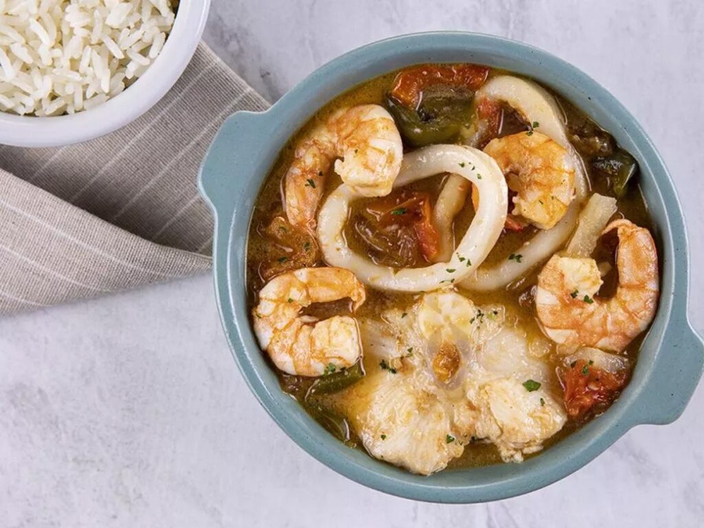 1 – Em uma panela grande, coloque 1 colher (sopa) de Azeite e leve ao fogo alto para aquecer. Junte o camarão, deixe por 3 minutos, sem deixar mudar de cor. Acrescente a lula e deixe por mais 2 minutos, ou até o camarão mudar de cor. Desligue o fogo e transfira para um prato e reserve.