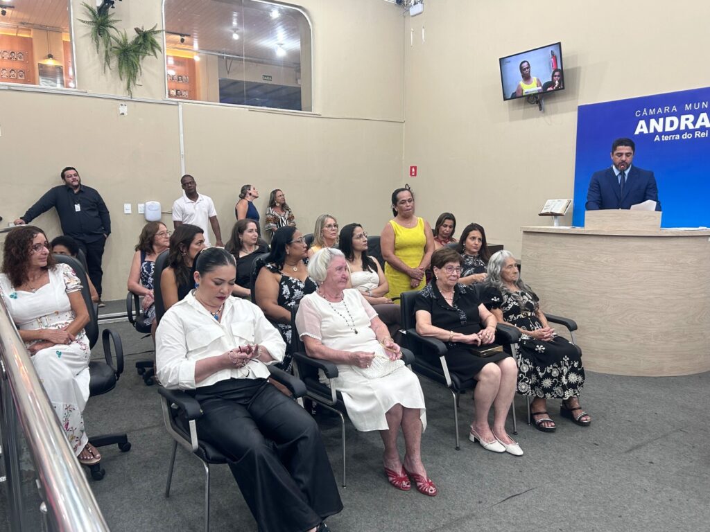 O plenário da Câmara Municipal foi lotado por familiares e amigos das homenageadas. E a convite do presidente, Guilherme Pugliese (União Brasil), compuseram a mesa de honra as vereadoras, Leila Rodrigues (Solidariedade) e Elaine Vogel (PSD), a promotora de Justiça, Rubia Motizuki e, representando o prefeito Mário Celso Lopes, a secretária de Educação, Estela Goda.