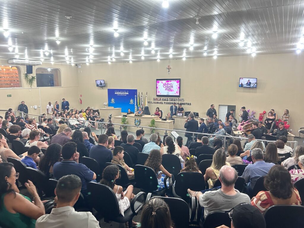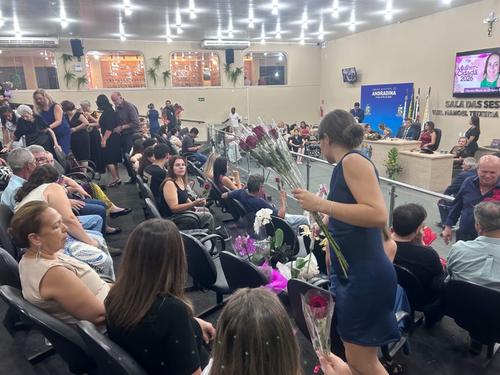 A Câmara Municipal de Andradina realizou a entrega do título “Mulher Cidadã” edição 2026. Em sessão solene, os vereadores entregaram a honraria às quinze indicadas, que tiveram suas histórias contadas diante do público. O evento aconteceu na segunda-feira (30/3) em comemoração ao mês da Mulher.