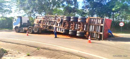 De acordo com os dados, o acidente ocorreu no dispositivo de retorno da rodovia SPD-619/294, no município de Pacaembu (SP). O motorista relatou que uma falha mecânica — especificamente a quebra da quinta roda do veículo — fez com que a segunda composição da carreta se soltasse e tombasse, espalhando a carga pela pista.