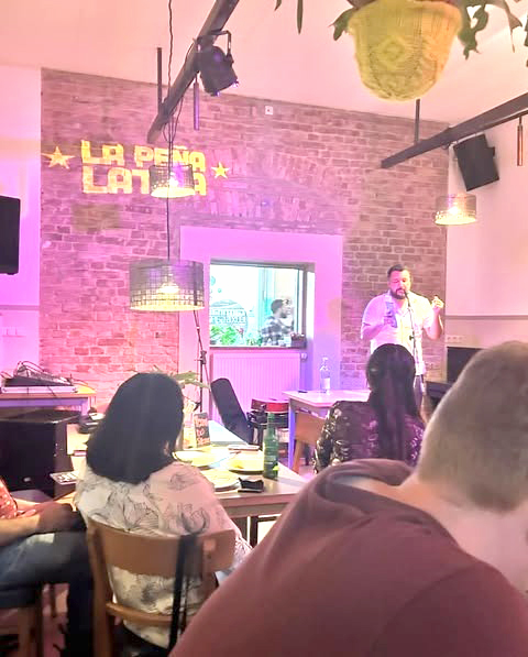 Além da participação no colóquio, o professor também integrou a programação do evento El Popurrí, ocorrido no dia 17 de junho na Cantina Fux & Ganz, espaço cultural localizado em Hamburgo. A convite do Prof. Markus Schäffauer e de Alejandra del Río, Samuel recitou e comentou poemas de seu livro Tafofobia goiana. A atividade reuniu convidados da cena literária e artística latino-americana residente na Alemanha, com leituras, música ao vivo e gastronomia típica.