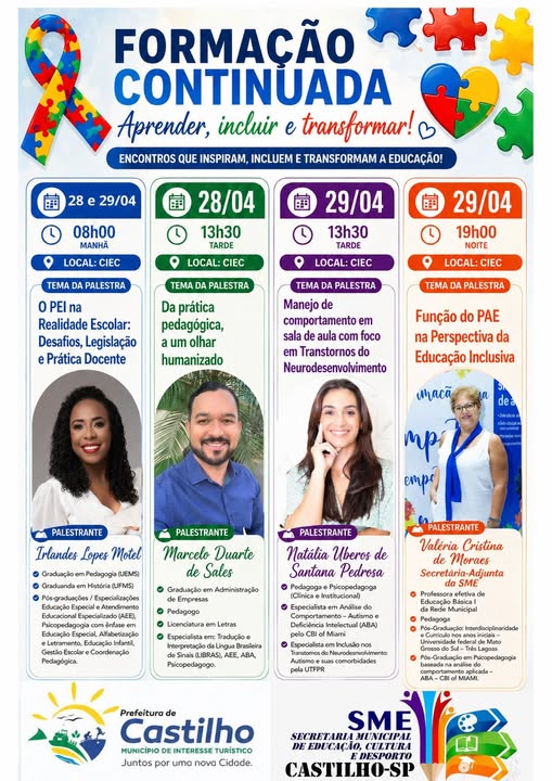 A iniciativa faz parte de um cronograma que se estendeu por todo o mês de abril, reforçando que o compromisso com a inclusão — especialmente voltada ao autismo e transtornos do neurodesenvolvimento — é uma prioridade constante da gestão:
