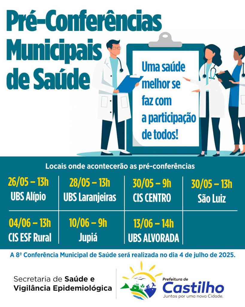 Todas essas 07 etapas iniciais são fundamentais para realização da 8ª Conferência Municipal de Saúde, que neste ano de 2025 acontecerá a partir das 08h do dia 04 de julho, no Anfiteatro do CIEC.