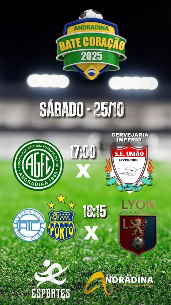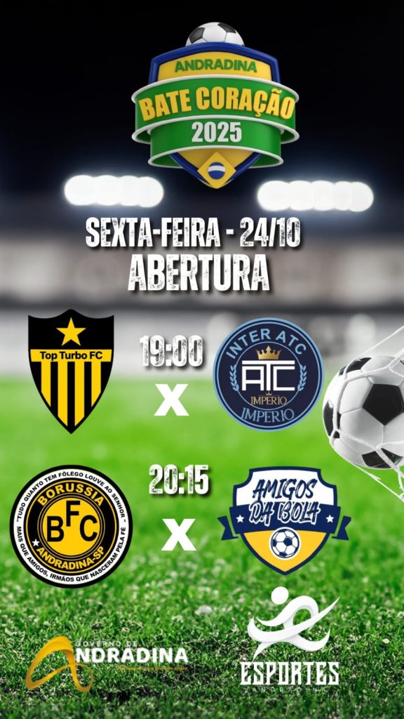 ANDRADINA – Começa nesta sexta-feira (24), a partir das 19h, com direito a abertura oficial com execuções dos hinos nacional e municipal, equipes perfiladas, o Bate Coração 2025, com a realização de duas partidas. O diferencial esse ano os jogos serão realizados no estádio municipal Evandro B. Calvoso. Não haverá partidas aos domingos.
