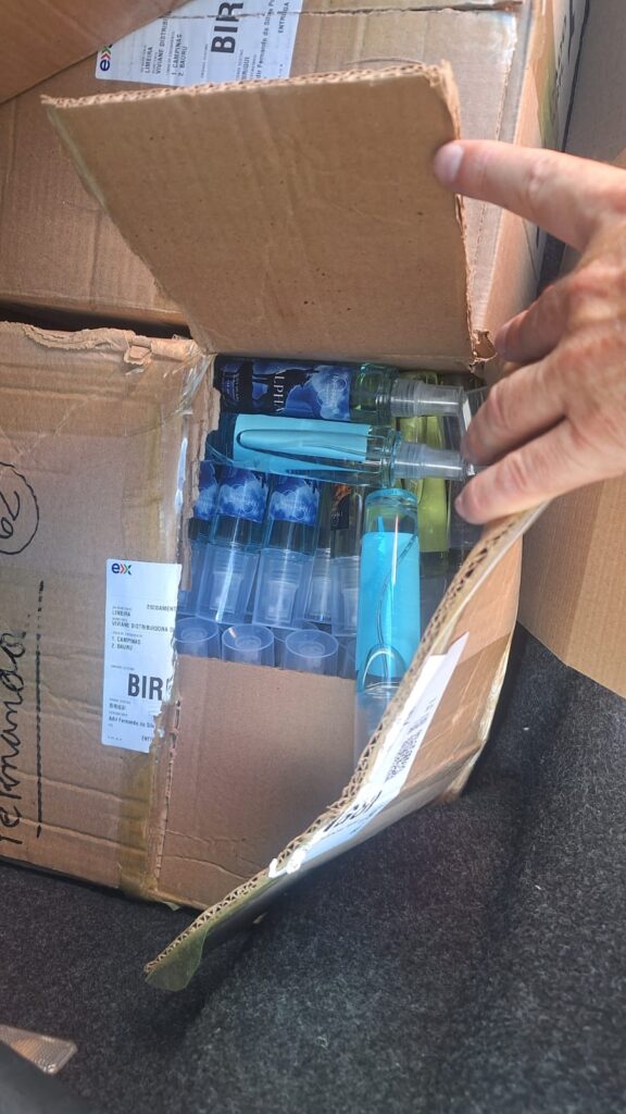 Diante da situação, a Vigilância Sanitária foi acionada e acompanhou a ocorrência. As partes foram conduzidas à Delegacia Central, onde foi realizada a contagem dos itens, totalizando 626 unidades de águas perfumadas, além da apreensão de uma máquina de cartão.