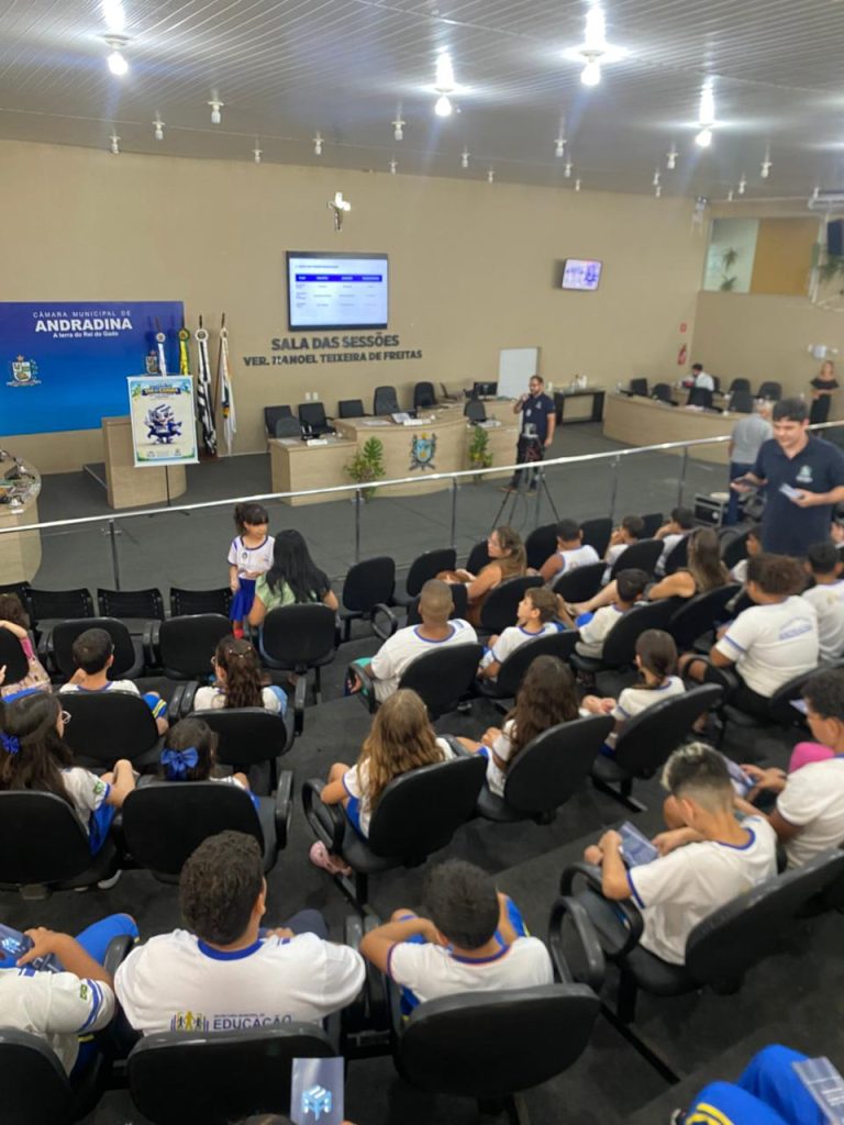A Câmara Municipal de Andradina abriu as portas, na segunda-feira (2), para uma aula prática de cidadania. Alunos do 5º ano da EMEF Zoraide de Carvalho Oliveira participaram do projeto “Dia de Câmara”, iniciativa da Escola do Parlamento de Andradina “Jornalista Antônio José do Carmo”.