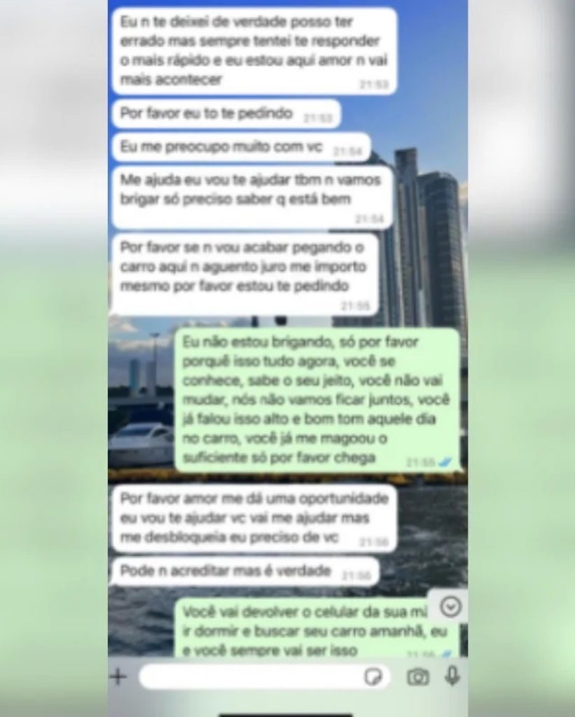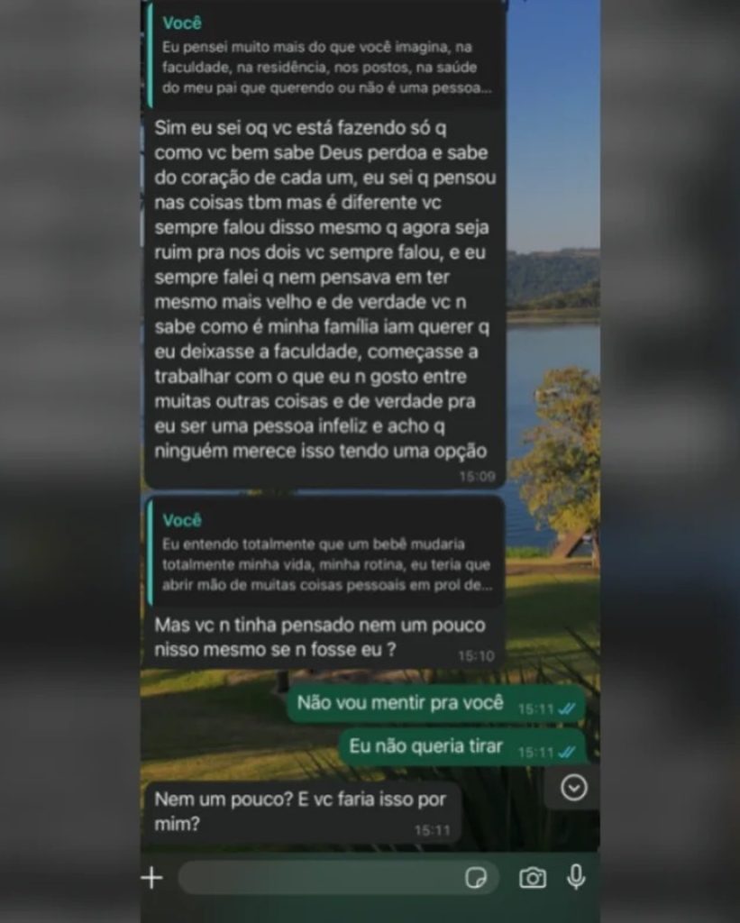 Após ser agressivo, o homem mudava o discurso para um tom de arrependimento e promessas de que “superariam juntos”, tentando convencer Carolina de que o aborto era o “melhor para os dois”.