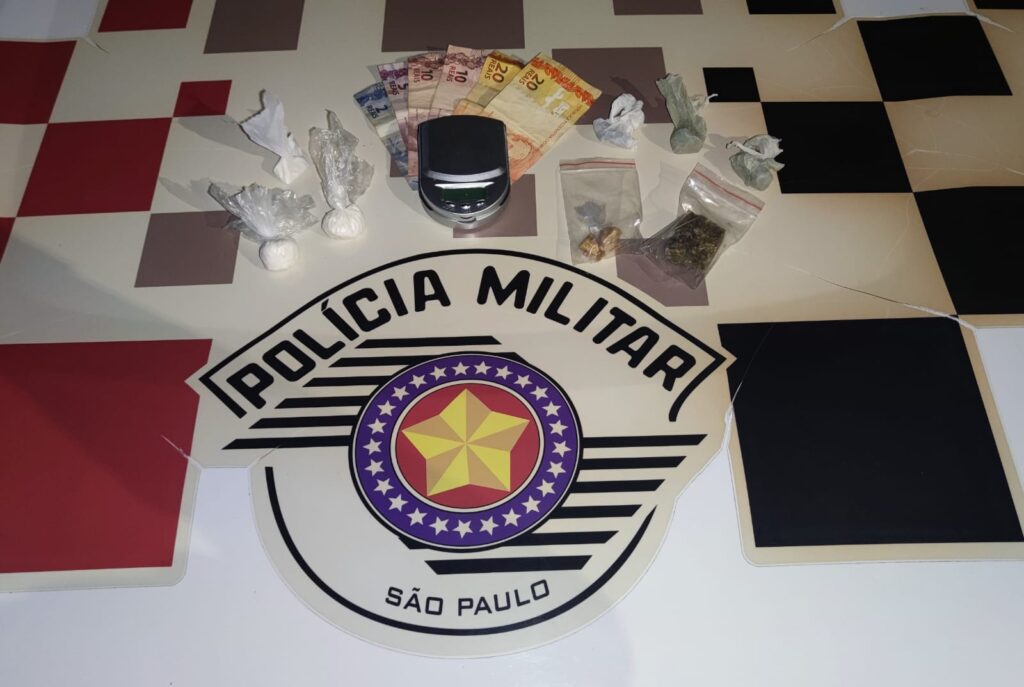 Os policiais abordaram o suspeito apontado na denúncia e durante vistoria no local  foram apreendidos R$ 67,00 em dinheiro, uma balança de precisão e diversas porções de entorpecentes já fracionadas de cocaína, crack e maconha.