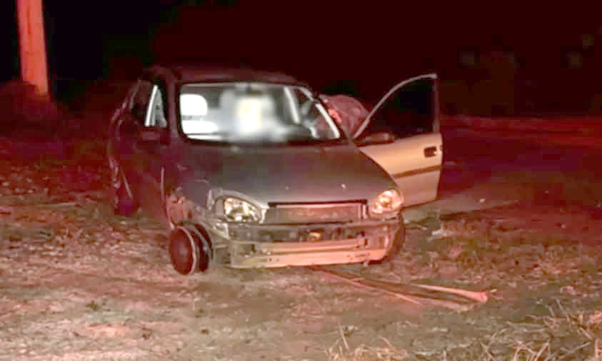 O veículo, identificado pelo sistema de alerta de câmeras de monitoramento, estava sem o para-choque dianteiro e sem um dos pneus, apenas com a roda no asfalto.