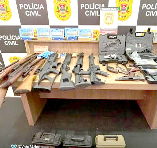 Ao todo, foram apreendidas mais de 695 munições, incluindo calibres .32, .38, .357, 9mm e 7.5mm, além de cartuchos de calibre 12 e 28. Também foram encontradas três carabinas, escopetas, um fuzil, além de pistolas e revólveres.