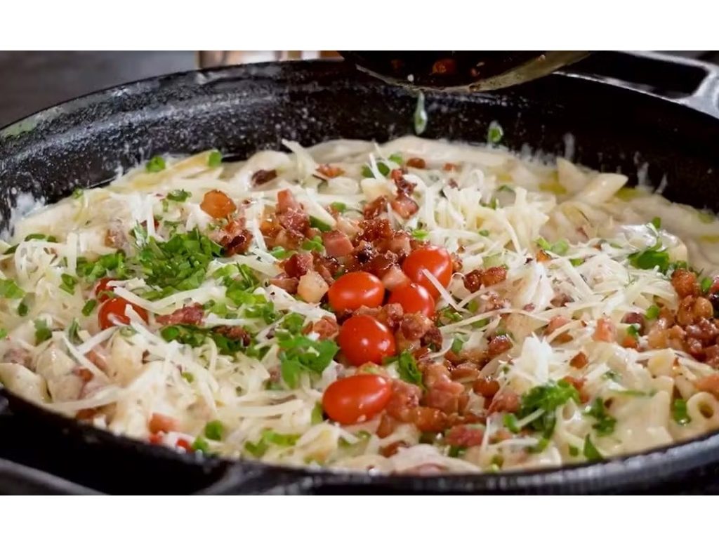 5 – Misture o macarrão ao creme ainda quente, envolva bem e finalize com queijo ralado e cheiro-verde.