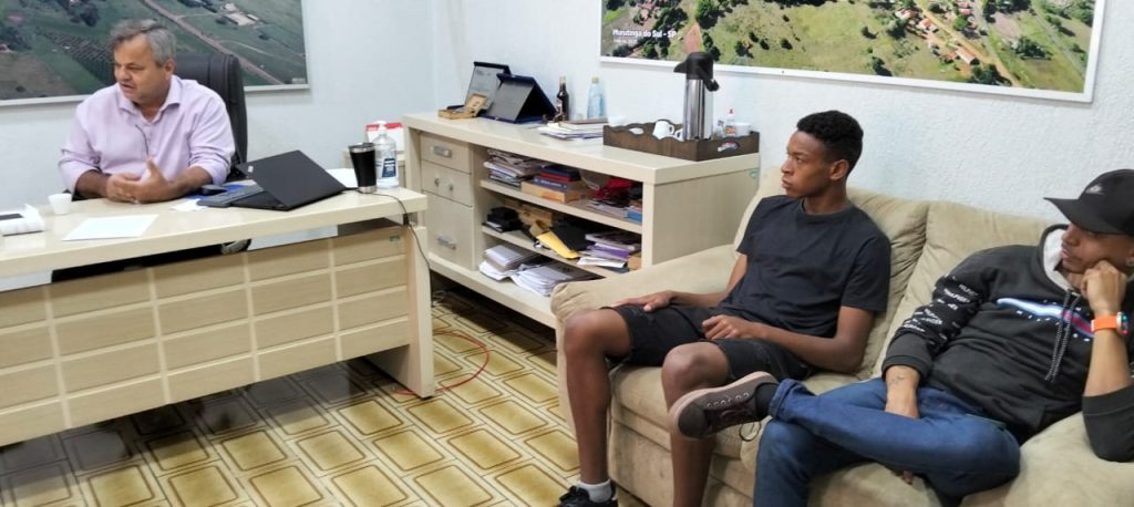 Durante o “bate-papo” na Prefeitura, Marcos Paulo esteve acompanhado pelo diretor e vice-diretora da Escola Estadual Padre Anchieta, Júlio César Araújo e Eliane Cristina de Oliveira Carvalho, do coordenador e vereador Fábio Djaviti, da professora de Educação Física, Mariana Peres Pereira e de seu irmão, Thiago Pereira.
