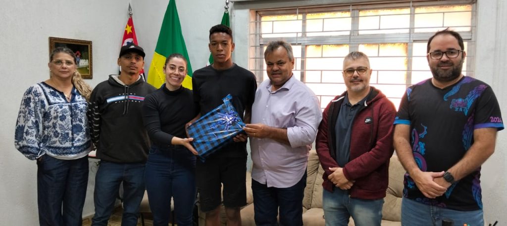 O jovem atleta murutinguense e aluno da EE Padre Anchieta, Marcos Paulo Pereira da Silva irá disputar mais uma etapa dos Jogos Escolares do Estado de São Paulo. Antes da viagem, o prefeito de Murutinga do Sul, Cristiano Eleutério Soares da Silva recepcionou o jovem Marcos Paulo em seu gabinte na manha desta terça-feira (08/07).