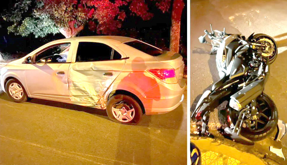 A colisão envolveu uma motocicleta Shineray Storm 200, de cor cinza, e um automóvel Chevrolet Prisma, prata. Com o impacto, a motocicleta sofreu diversos danos, entre eles roda dianteira rachada, carenagem avariada, farol e retrovisor esquerdo quebrados, além de arranhões na pintura. Já o carro teve o para-brisa trincado, airbags do motorista e do passageiro acionados, porta traseira esquerda amassada, roda traseira esquerda danificada e pneu furado.