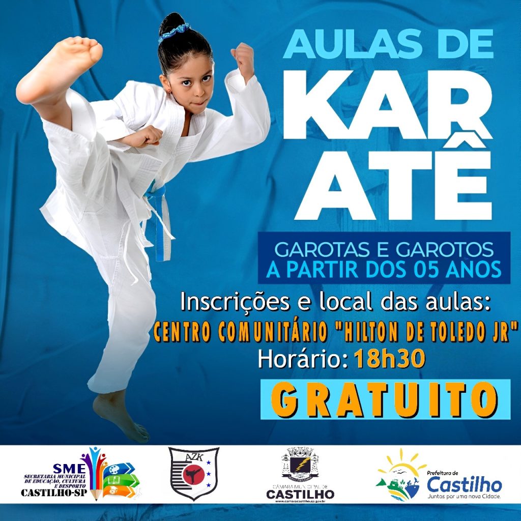O Diretor Municipal de Esportes, Sylvinho Black, acaba de confirmar à redação do JPN, que Castilho terá aulas gratuitas de Karatê a partir desta segunda-feira (30). Segundo ele, as aulas são destinadas a meninos e meninas com idades a partir dos 05 anos. Elas acontecerão todas as segundas e quartas-feiras, a partir das 18h30, no Centro Comunitário “Hilton de Toledo Júnior”, no bairro Leão I.