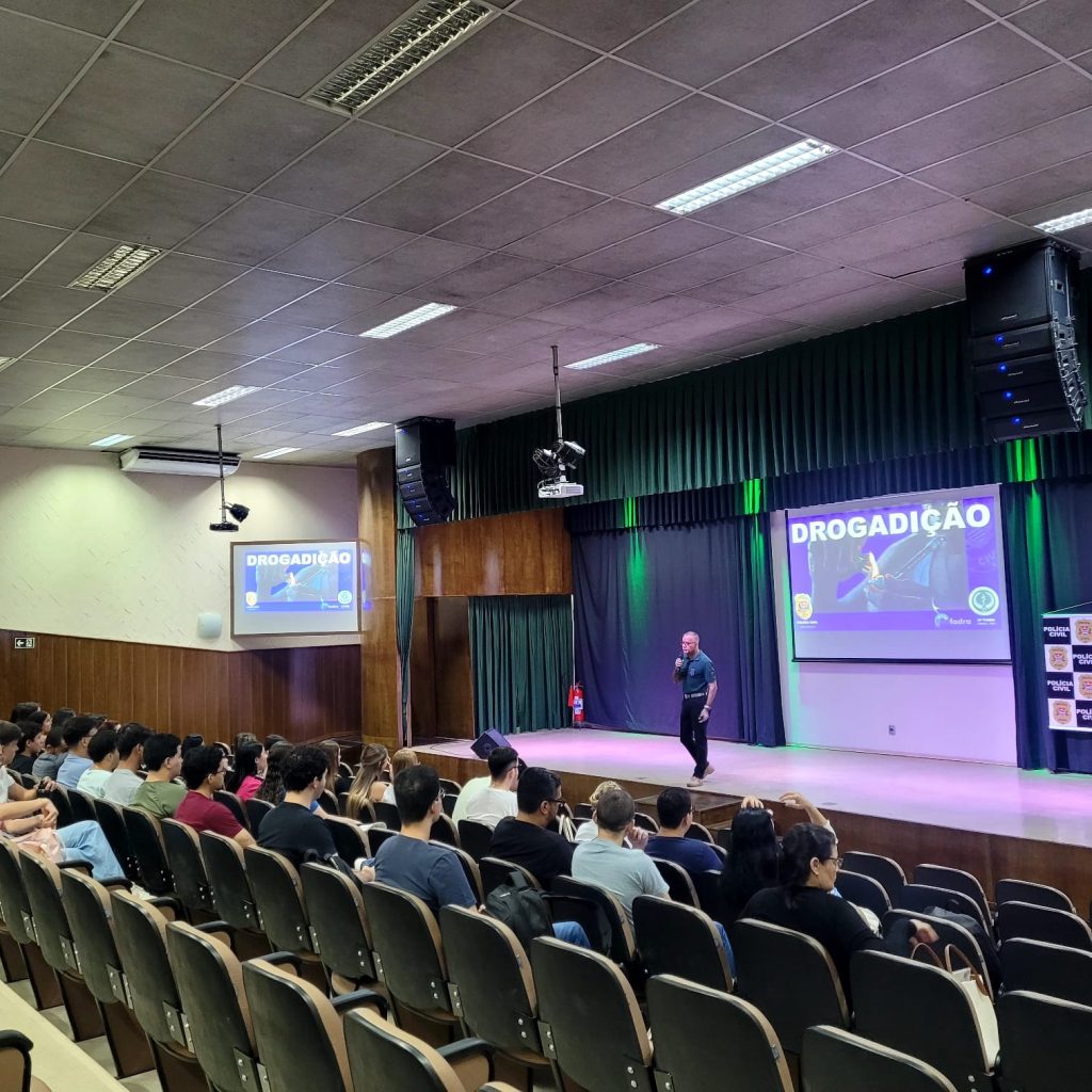 A Polícia Civil do Estado de São Paulo (PCSP), por intermédio da Delegacia Seccional de Polícia de Dracena, realizou, na quarta-feira (11), uma palestra voltada à prevenção do uso nocivo de drogas para cerca de mais de 50 estudantes ingressantes na 10ª turma do curso de Medicina da Unifadra, em Dracena. A atividade ocorreu no Auditório “Prof. Geraldo Mariano Alves” e integrou a programação oficial da Semana de Acolhimento dos Novos Alunos, iniciativa destinada à orientação, adaptação e formação cidadã dos calouros.