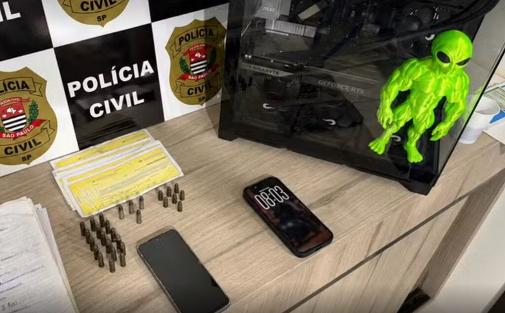 Durante a operação, realizada no bairro Jardim Laranjeiras, os investigadores apreenderam munições, aparelhos eletrônicos e documentos que indicam a existência de um esquema financeiro clandestino. A ação foi conduzida pelo Setor de Investigações Gerais (SIG) do Núcleo de Polícia Judiciária, que reúne o 1º, 2º e 5º Distritos Policiais da cidade.
