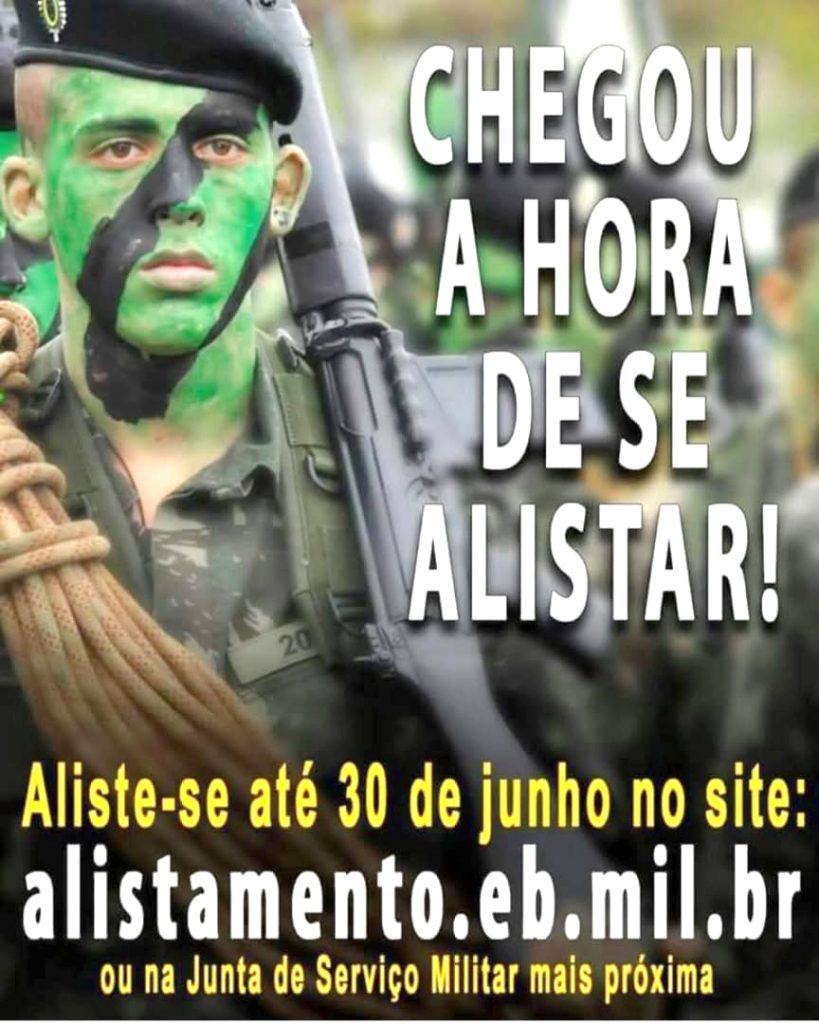 ANDRADINA – A Junta de Serviço Militar de Andradina informa que o prazo para o alistamento militar obrigatório se encerra na próxima segunda-feira, 30 de junho. A obrigação vale para jovens do sexo masculino que completam 18 anos em 2025.