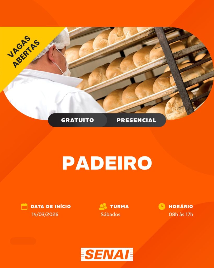 CASTILHO – A Prefeitura de Castilho, em parceria com o SENAI, está com inscrições abertas para uma nova turma de padeiros. As aulas serão ministradas aos sábados, no período diurno, das 8h às 17h, com duração de cinco meses, de 14 de março a 15 de agosto.