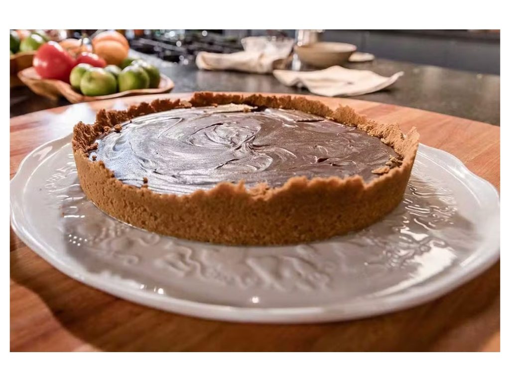 2 – Forre o fundo e as laterais de uma forma de aro removível com a massa. Reserve direto na geladeira por 15 minutos.