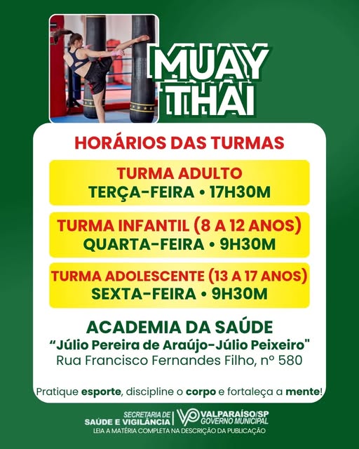 Diferente de outros municípios da região, que geralmente focam em atividades de baixo impacto para a saúde pública, Valparaíso aposta na disciplina e no vigor do Muay Thai para atrair o público. De acordo com as diretrizes da pasta, a prática auxilia diretamente no fortalecimento do corpo, no desenvolvimento da concentração e na elevação da autoestima dos participantes.